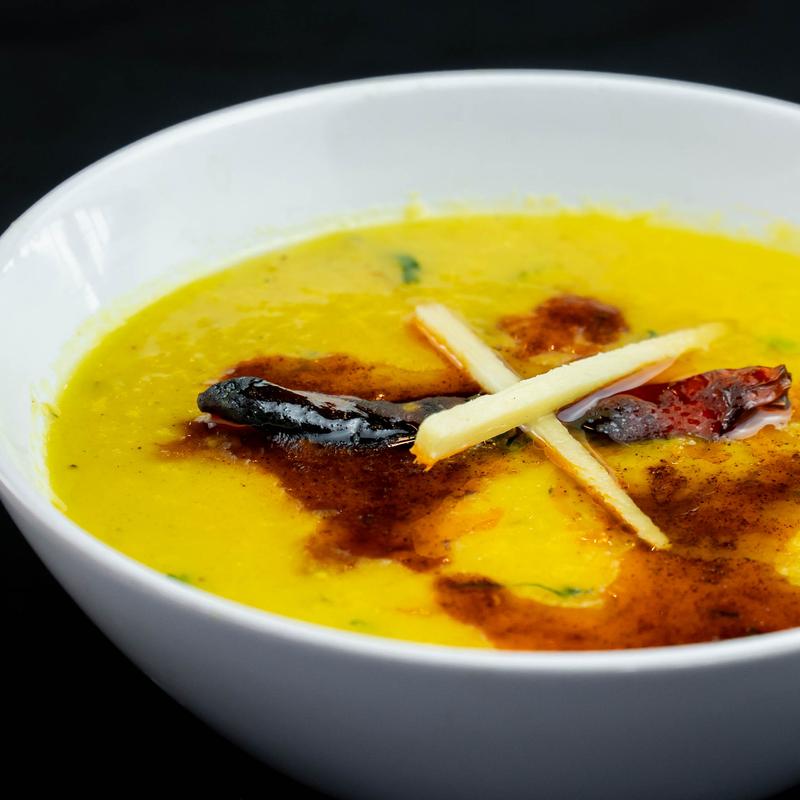 Yellow lentils cooked with spices, onions, and tomatoes for a tangy flavor.