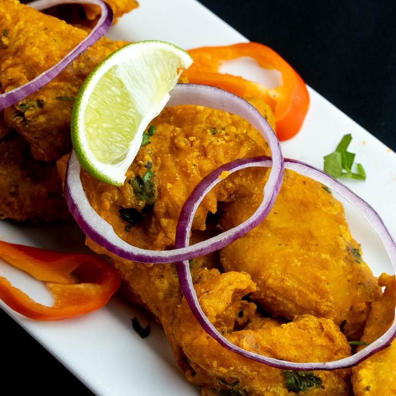 Tender fish fillets marinated in spices, shallow-fried to golden perfection, served with lemon wedges.